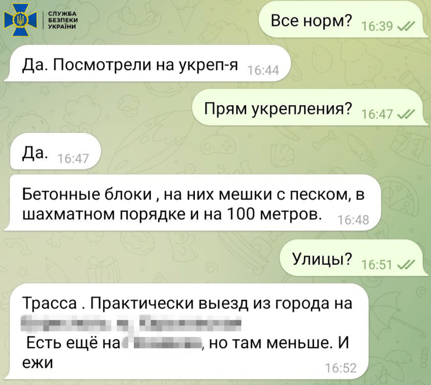 "Для цього їздив по місту та фіксував зовнішній вигляд українських об’єктів після обстрілів. Отримані відомості ворожий агент передавав через анонімні месенджери співробітнику Головного управління міжнародного військового співробітництва міністерства оборони рф. Про одержані дані російський посадовець інформував представників воєнної розвідки країни-агресора", — розповіли в СБУ.