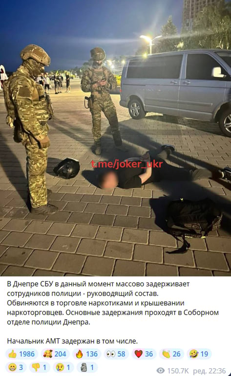 У Дніпрі Служба безпеки України масово затримує керівний склад працівників нацполіції. Наразі затримано близько 20 поліцейських.