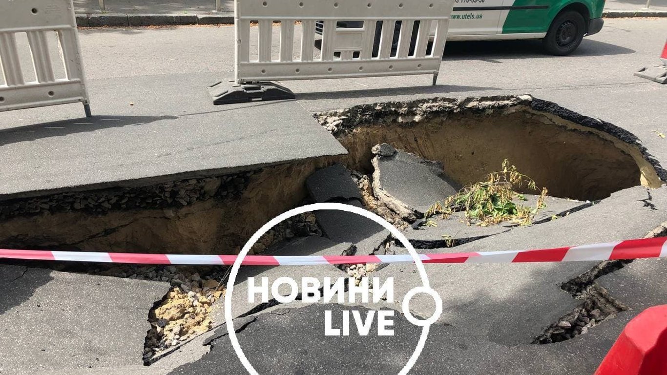 У вівторок, 22-го червня, у центрі Києва посеред проїзної частини провалилося асфальтне покриття та утворилася величезна яма.