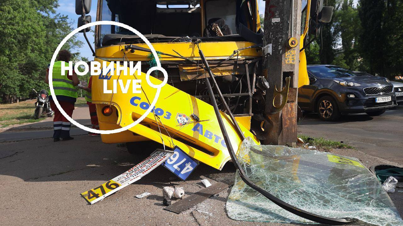 У Києві 30 червня на вулиці Курнатовського, 6, сталася ДТП. Маршрутне таксі № 476 "влетіло" в стовп, в салоні були заповнені всі сидячі місця.