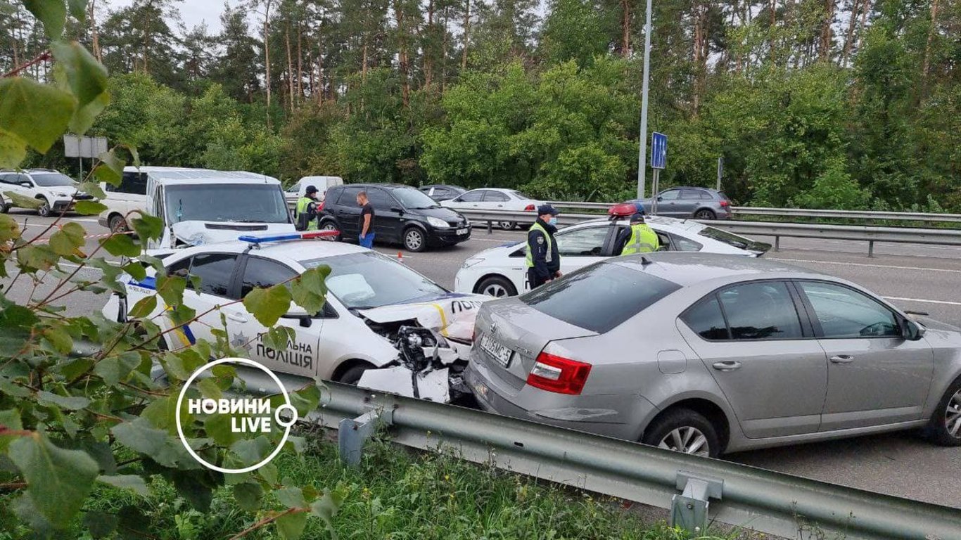 25 вересня на Житомирській трасі водій автомобіля Ford у стані алкогольного сп’яніння врізався в патрульну поліцейську машину Toyota, яка протаранила білоруську автівку Skoda Octavia. Постраждалого правоохоронця терміново госпіталізували.