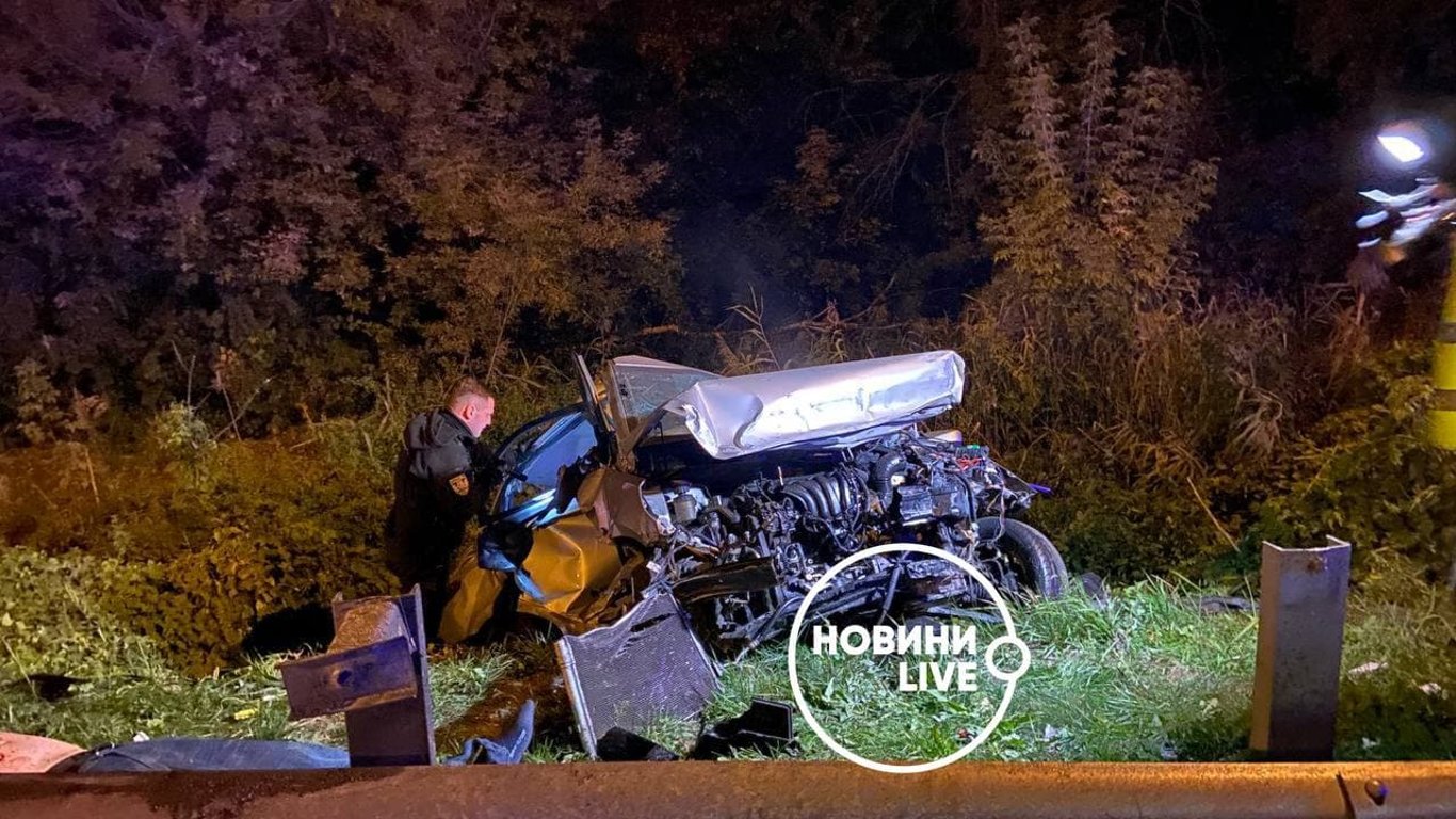 У Києво-Святошинському районі сталася смертельна ДТП. Автівка, що рухалася вздовж Дніпровського шосе, у напрямку селища Лісники, врізалася у відбійник, знесла стовб та вилетіла у кювет.