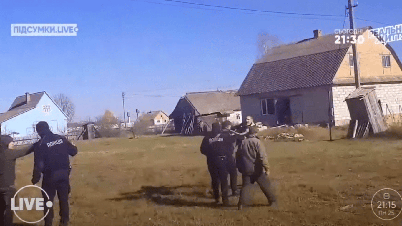 Не встигли журналісти почати зйомку, як на місце прибула група "братків" Сухацького, які перегородили дорогу та почали штовхати та бити місцевого активіста, який допомагав журналістам у зйомках.