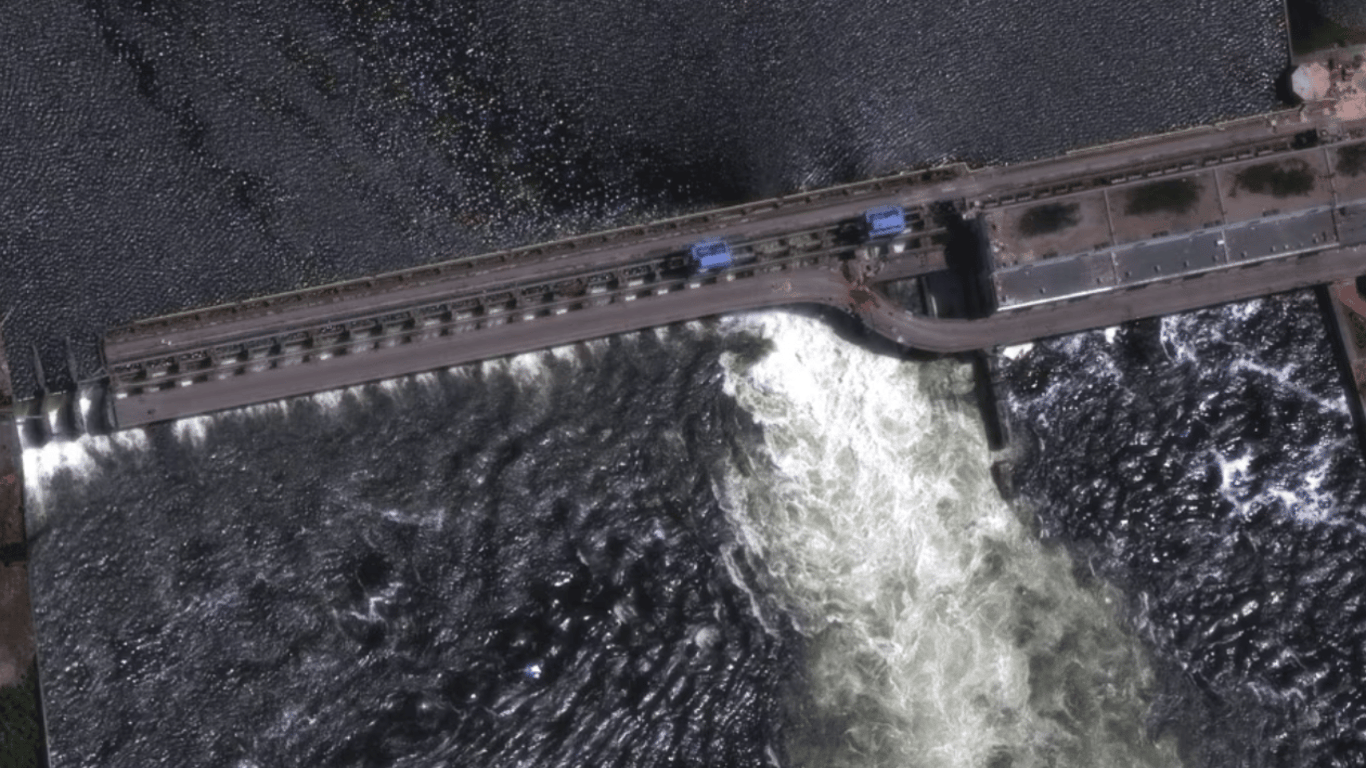 Из-за подрыва Каховской ГЭС произошло разрушение плотины и затопление населенных пунктов Херсонщины. Появились кадры со спутника с последствиями катастрофы.