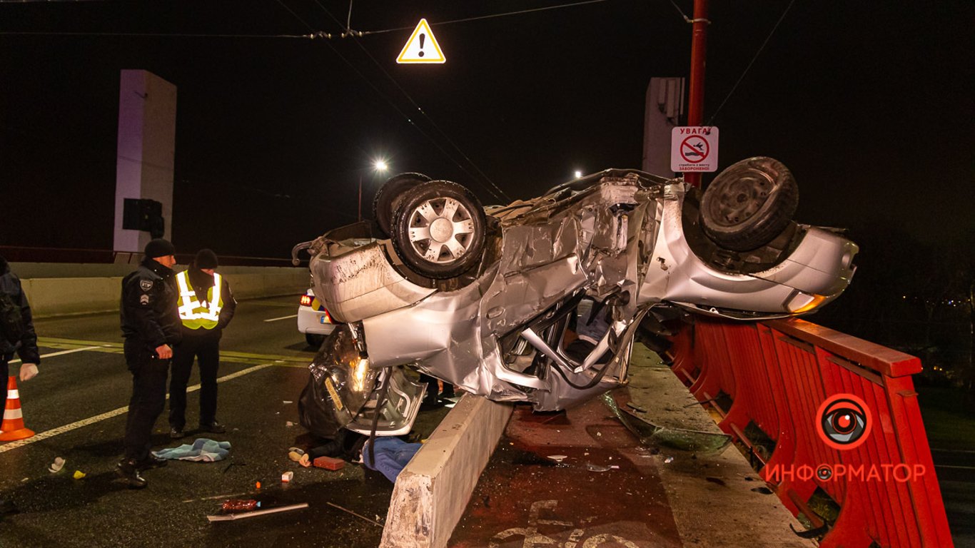 В Днепре на мосту занесло и согнуло автомобиль: есть погибшая. Видео