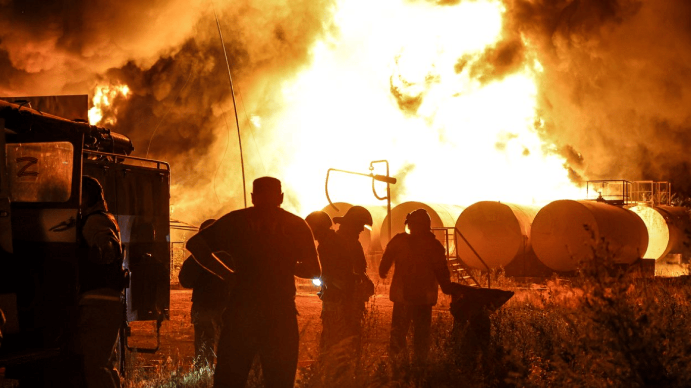 Во временно оккупированной Макеевке Донецкой области якобы в результате удара украинских военных загорелась российская нефтебаза. По данным экстренных служб, разлилось горючее, что и поспособствовало фаер-шоу.