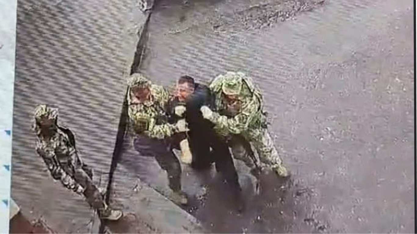 На видео, которое обнародовали в соцсетях, можно увидеть, что люди в военной форме и с документами в руках общаются с гражданским. После разговора возникает драка.