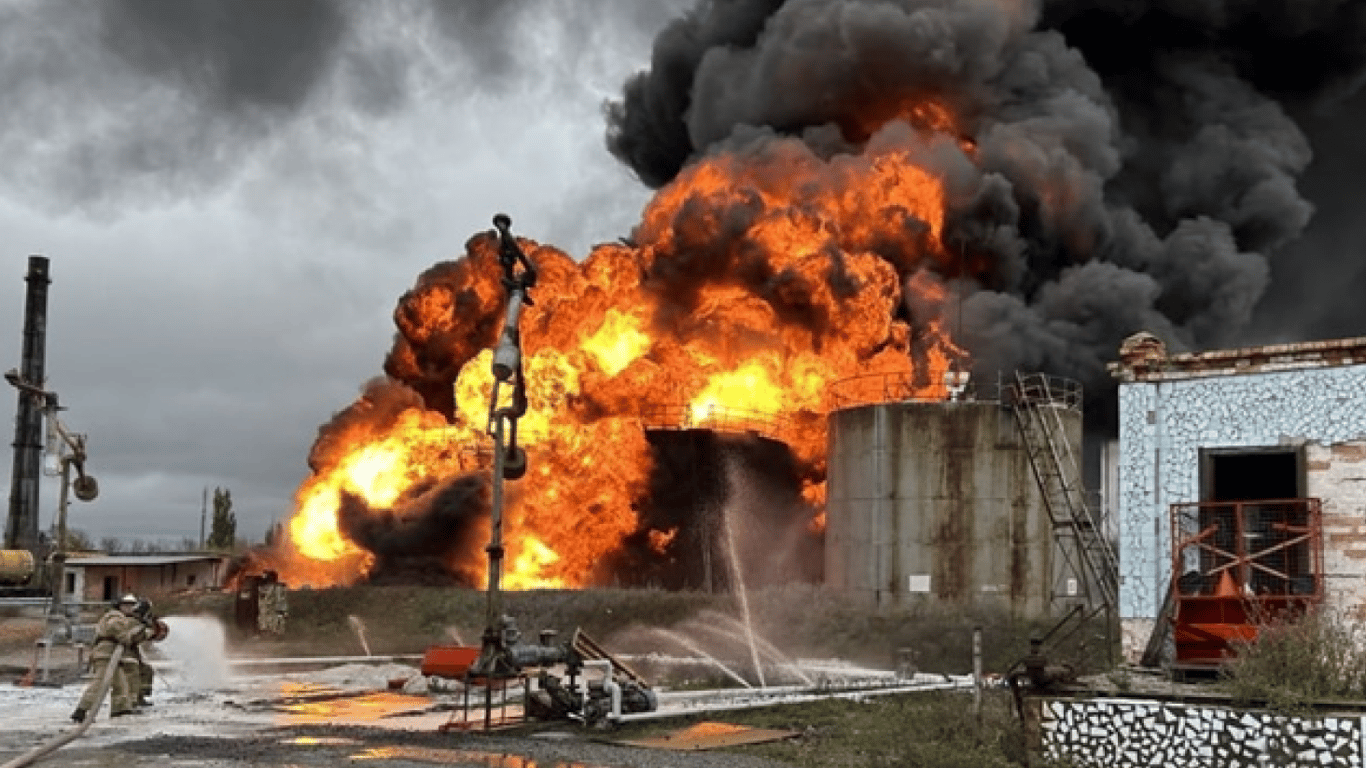В сети показали кадры полыхающей нефтебазы в Шахтерске