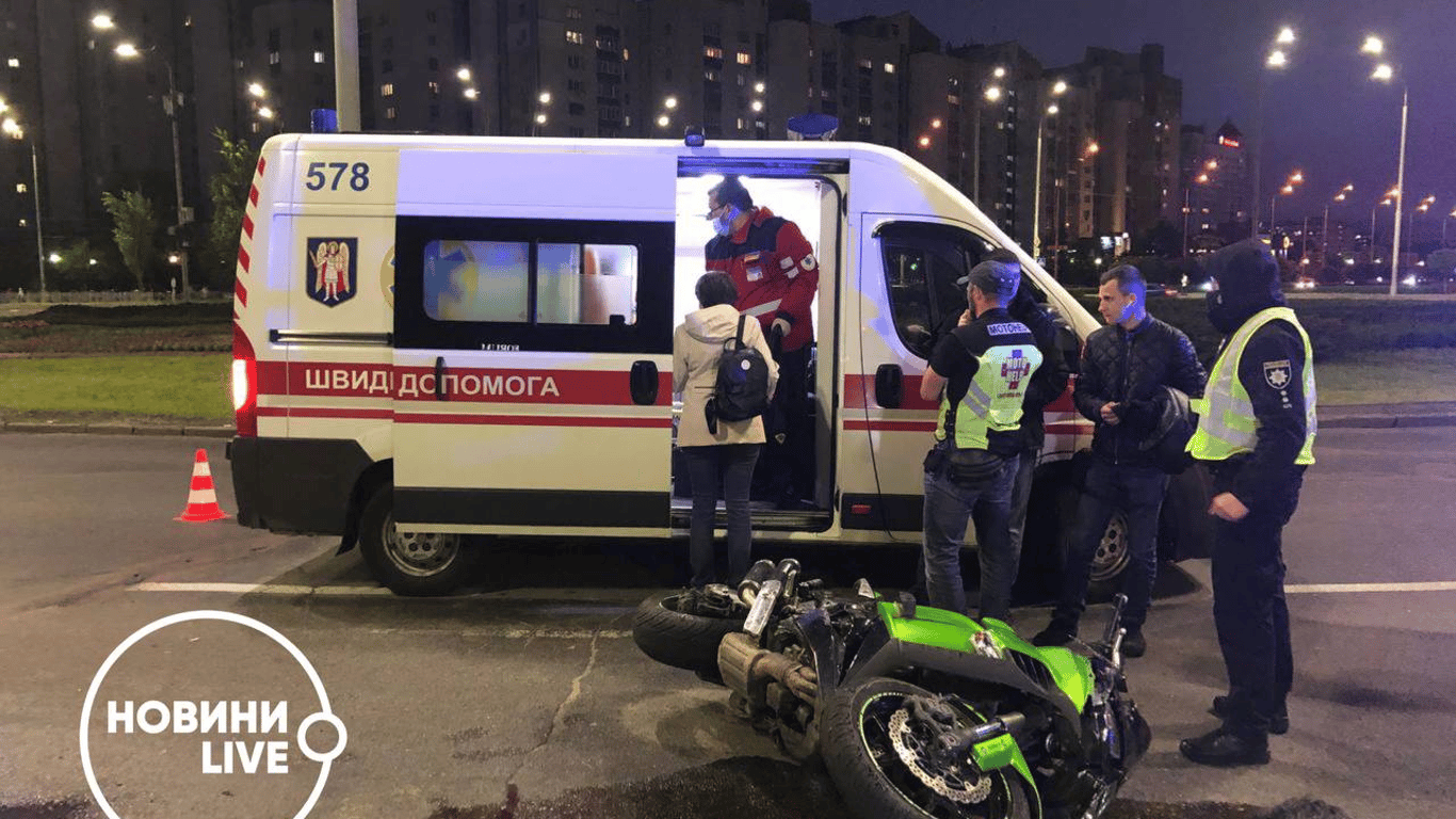 В Киеве произошло ДТП с участием автомобиля Toyota Rav 4 и мотоцикла Kawasaki на пересечении проспекта Героев Сталинграда и улицы Маршала Тимошенко.