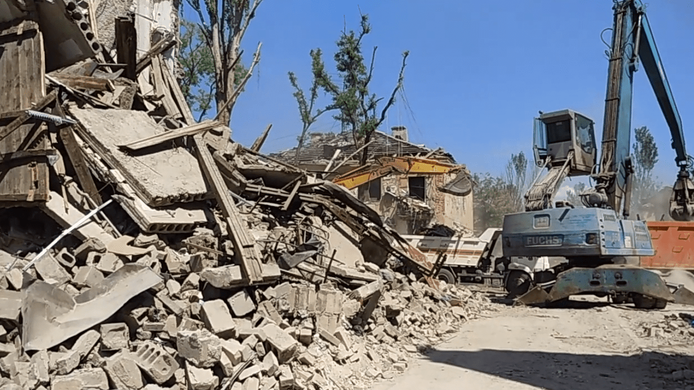В Мариуполе россияне начали сносить разрушенные дома, под завалами которых могут оставаться тела убитых мирных жителей.