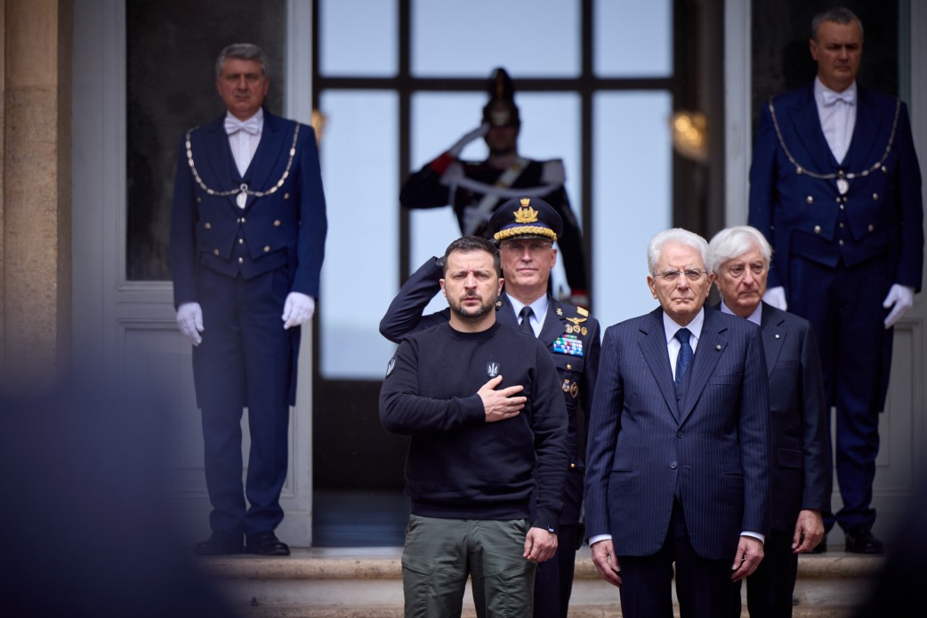 Президент України Володимир Зеленський провів зустріч із Президентом Італійської Республіки Серджо Маттареллою в межах офіційного візиту. Першочергово Зеленський висловив подяку за підтримку України у відстоюванні територіальної цілісності.